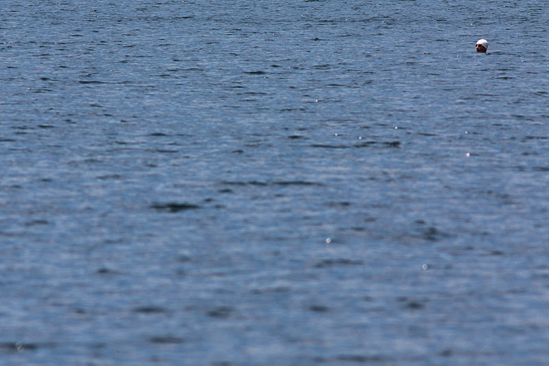 I managed to swim about two-thirds of the way across the lake (and back, thanks), sans wetsuit, and it was about as rejuvenating experience as I could have asked for. Cool water, warm sun, clear skies...good life.
